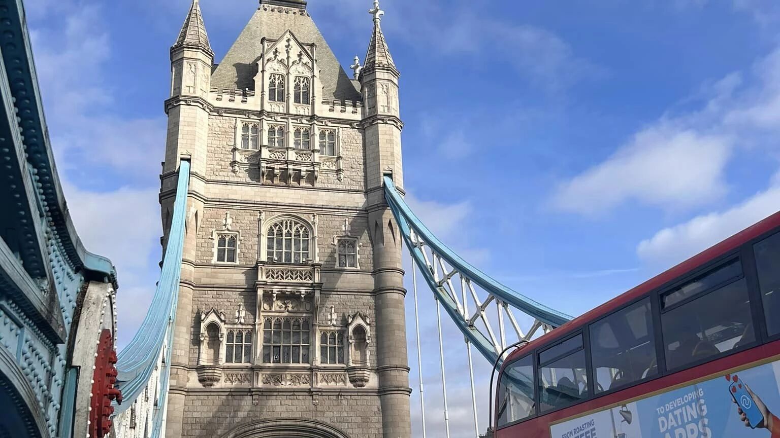 przelot z Krakowa do Londynu (długość lotu ok. 2h), przejazd komunikacją publiczną do centrum Londynu